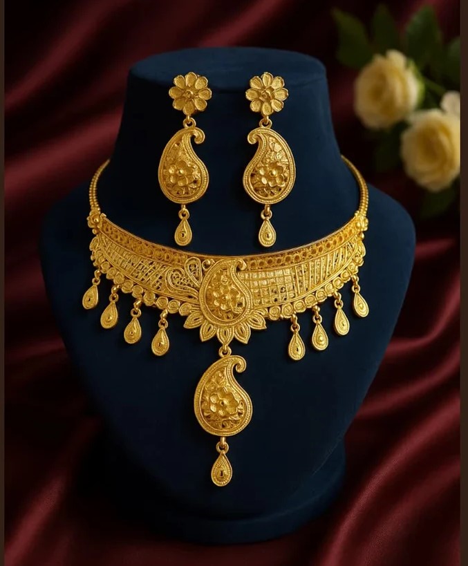 Step into elegance with our Queen’s Choice Jewellery collection. Each piece is meticulously crafted with intricate designs and a radiant gold-plated finish, perfect for weddings, festive occasions, or any special celebration.