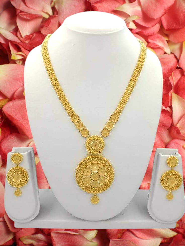 • Classic “Matar Mala” Influence: The chain incorporates traditional bead patterns, offering a textured, high-dimensional “yellow gold” finish.